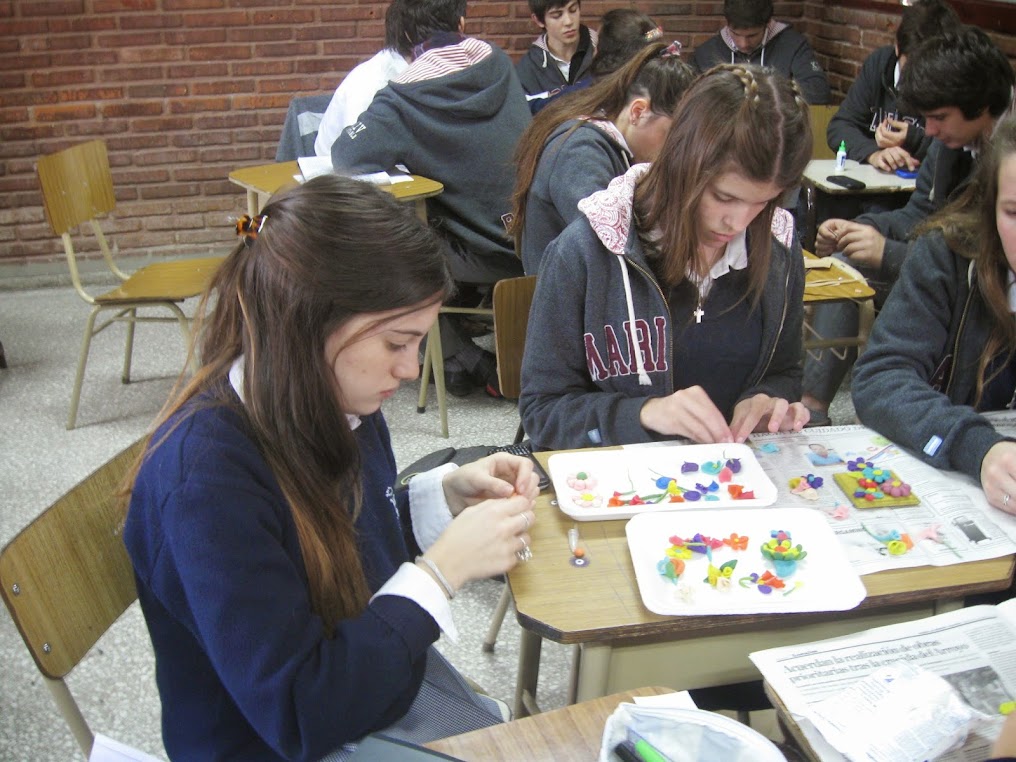 en los escritorios del equipo de conducción. Ëstas están decoradas con ramilletes de flores realizadas